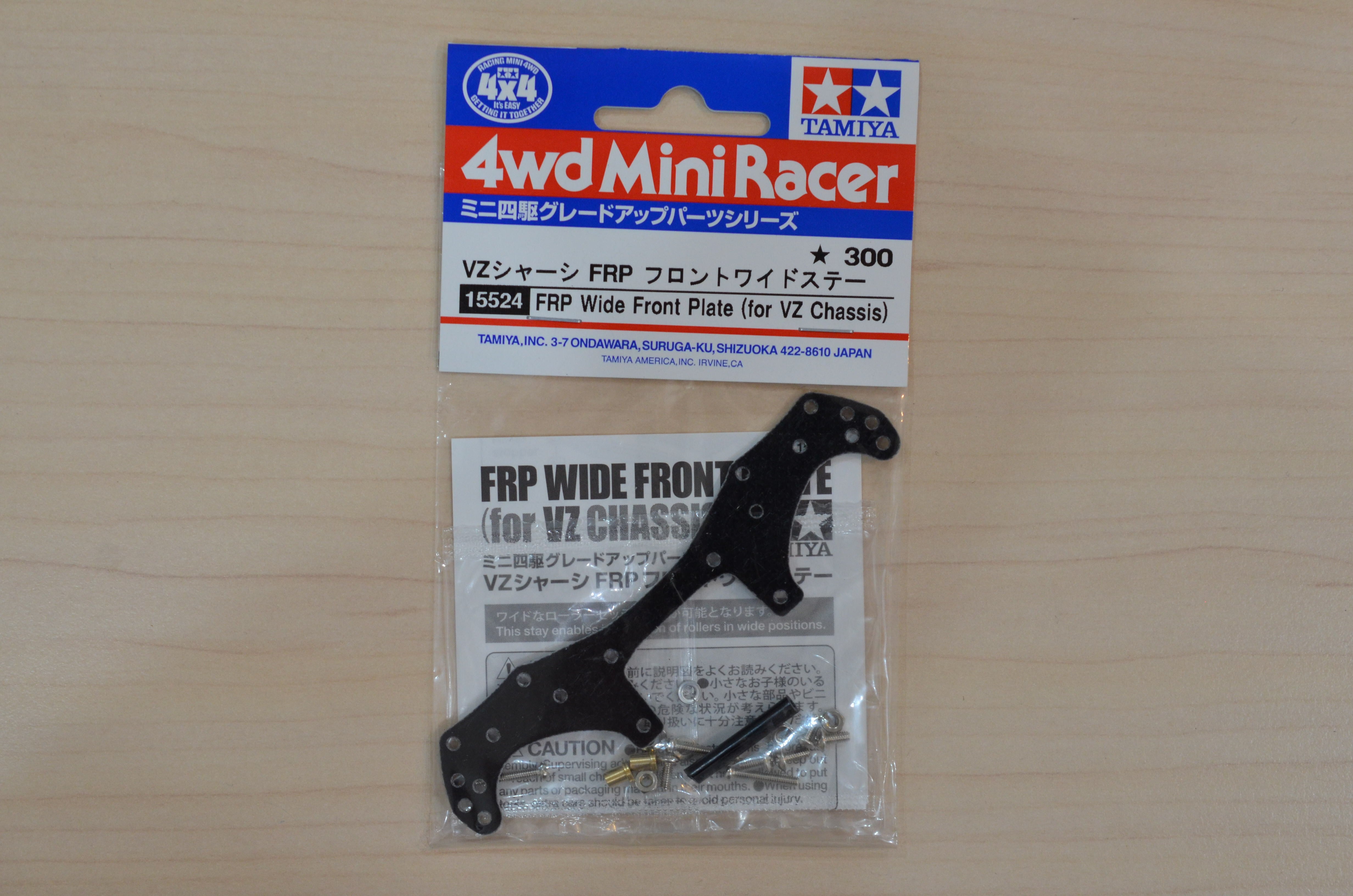 9、11、13、17、19mmのローラーをレギュレーションの最大幅になるように取り付けられる VZシャーシに最適な1.5mm厚のFRP製フロントワイドステー