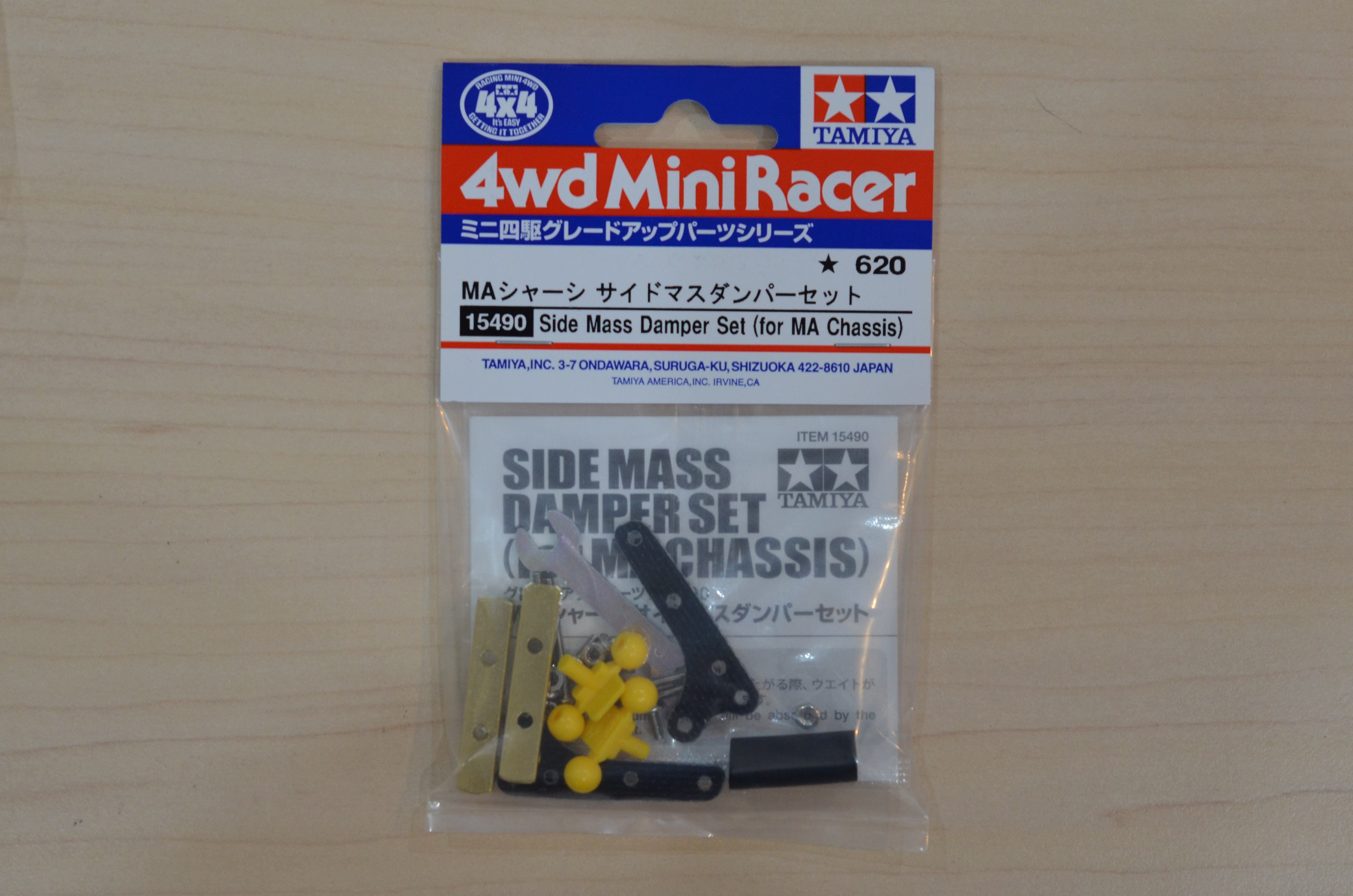 MAシャーシにあわせたFRPプレート2枚とマスダンパースクエア(6×6×32mm)2個、イエローカラーのスタビボール4個などのセット。
