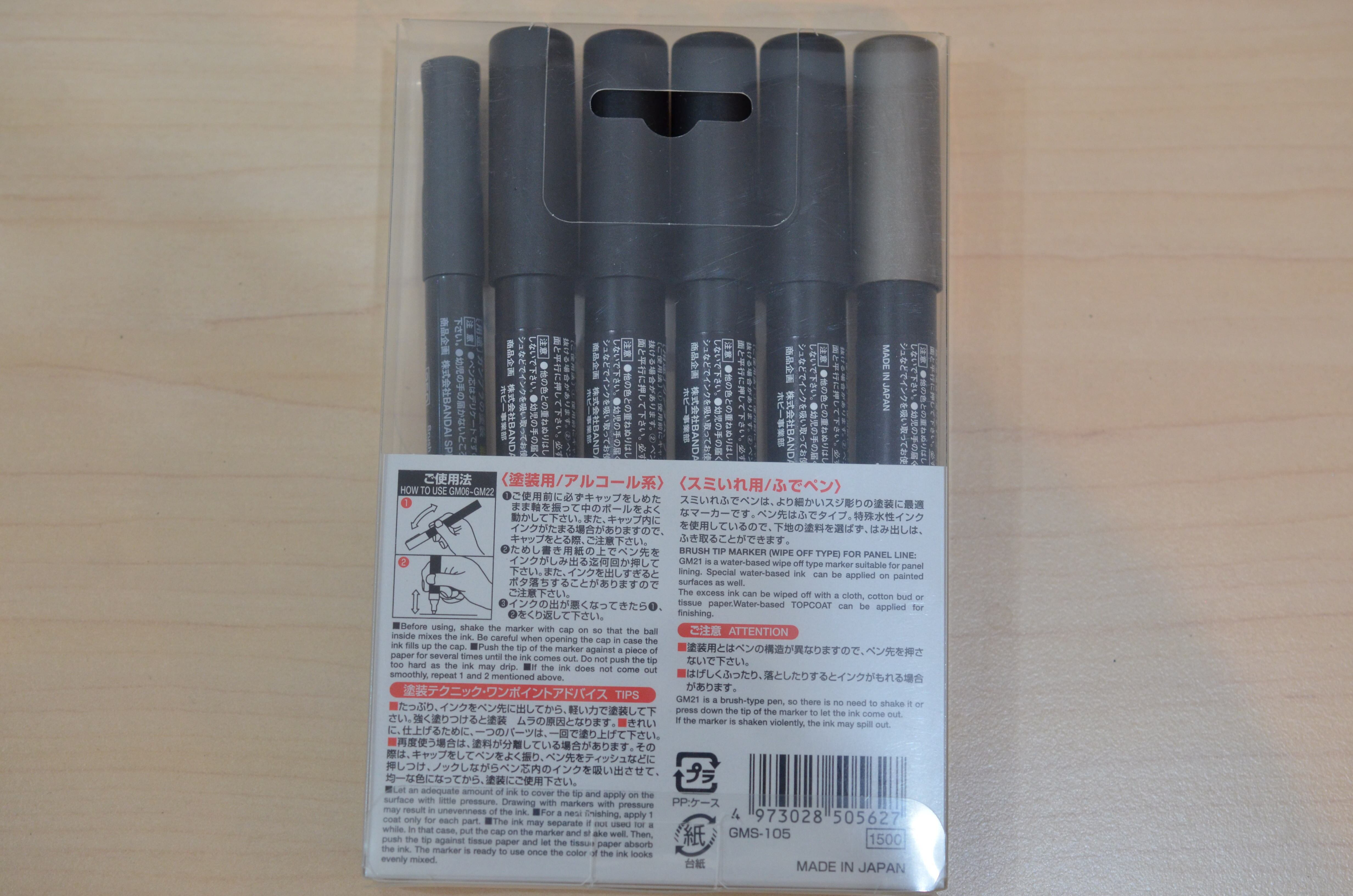 スミいれ用ふでペン(グレー)、ガンダムガンメタリックの6色セット