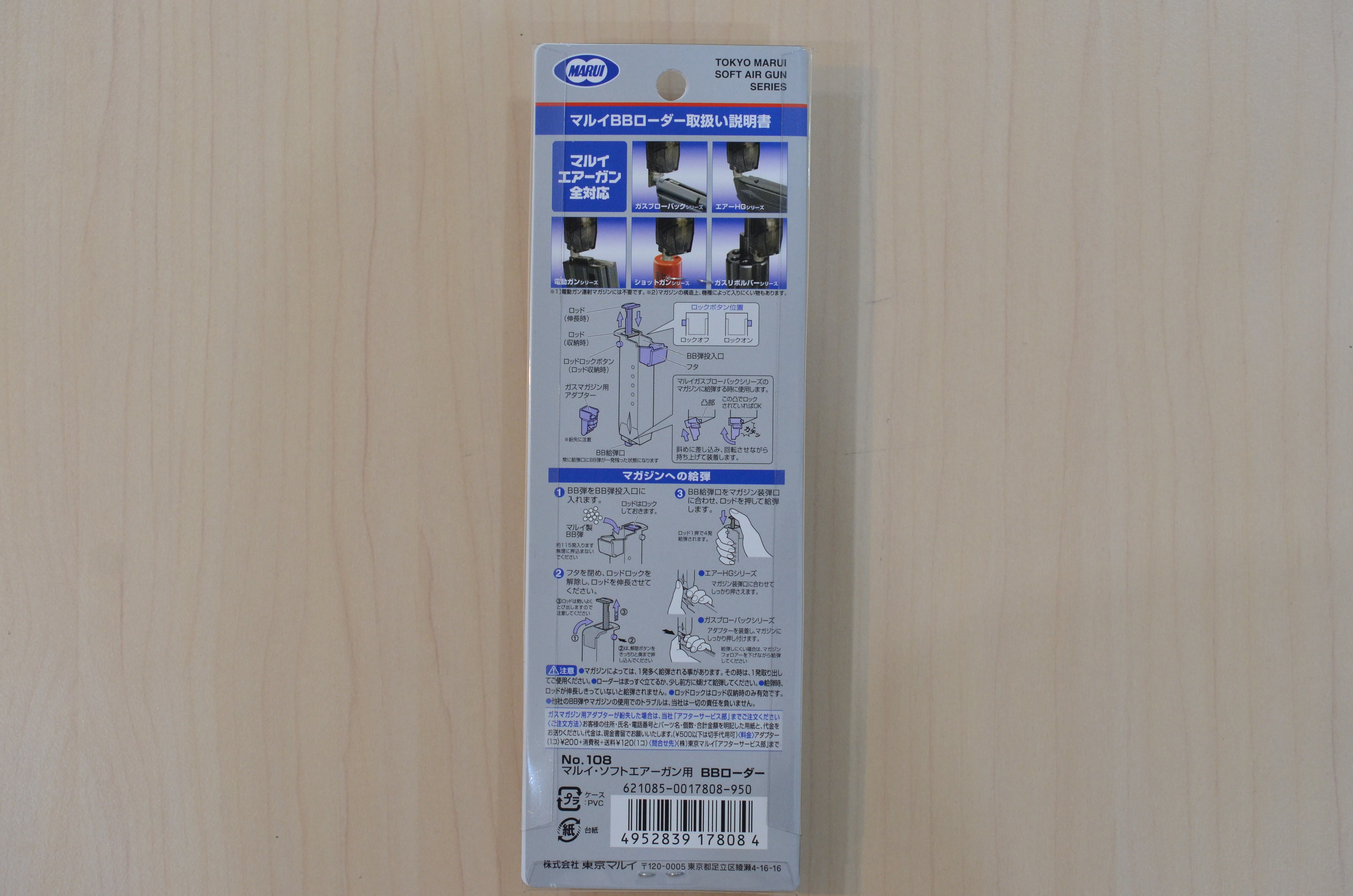 装弾数約115発、マガジンへ1度に4発のBB弾を給弾できるローダー