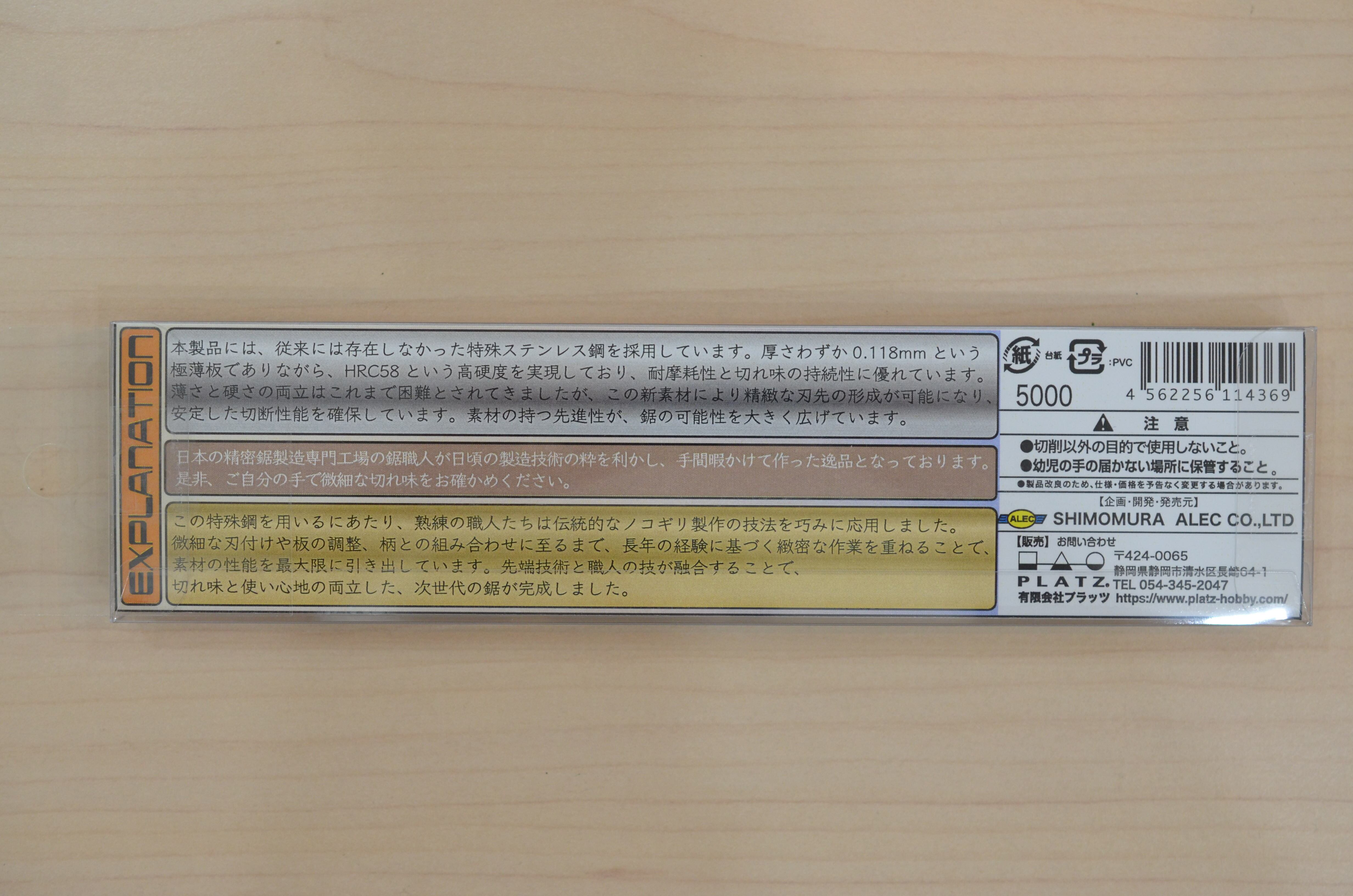 高硬度の特殊ステンレス鋼を使用し、耐摩耗性と切れ味持続性を両立された精密ホビー用のこぎり